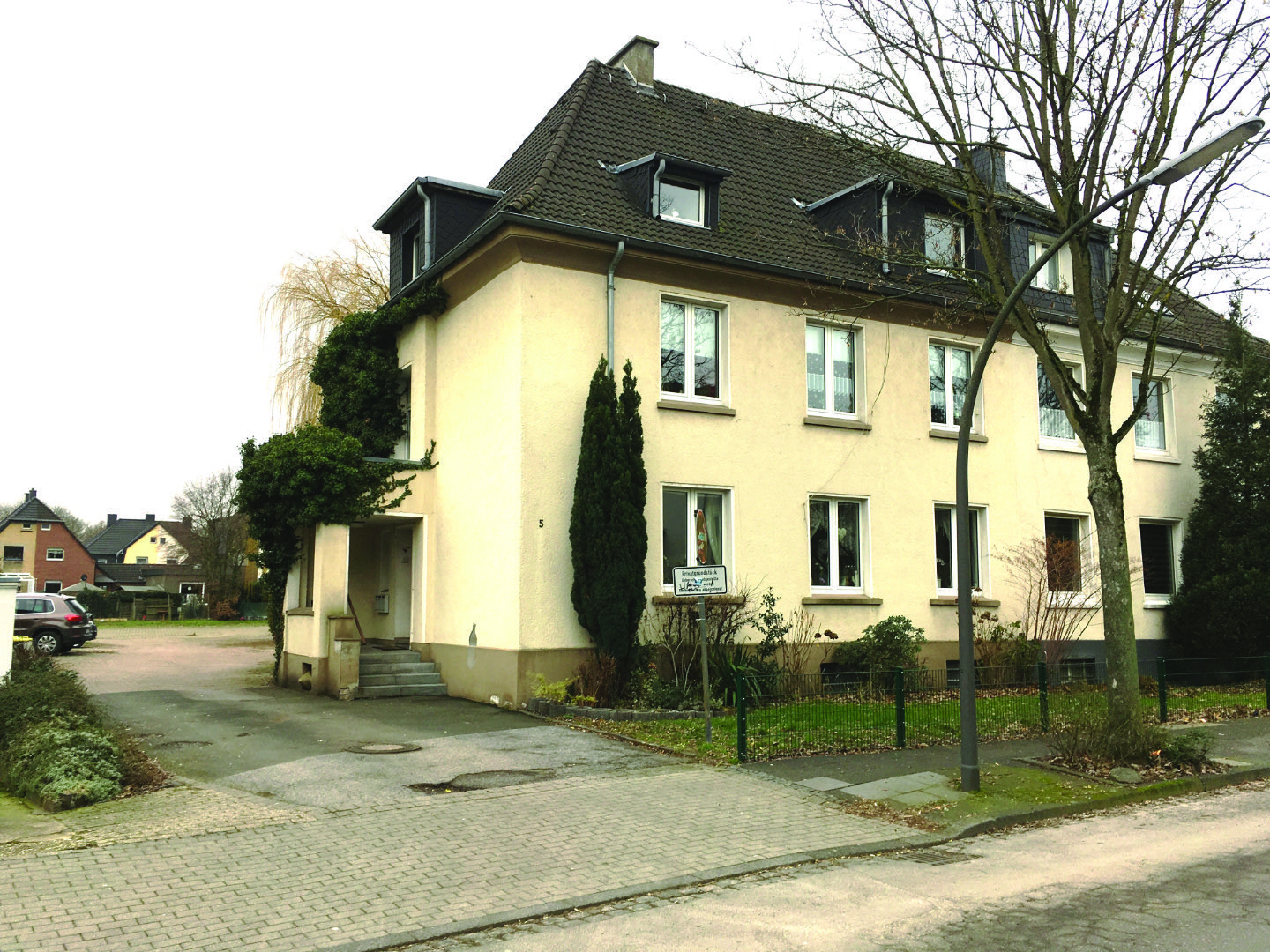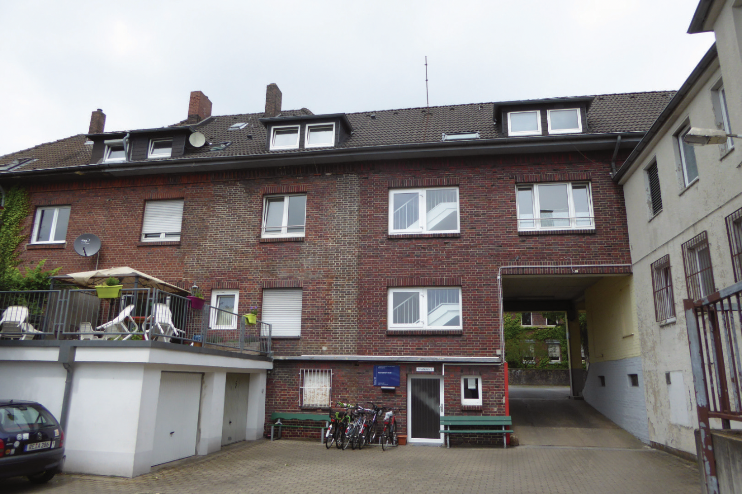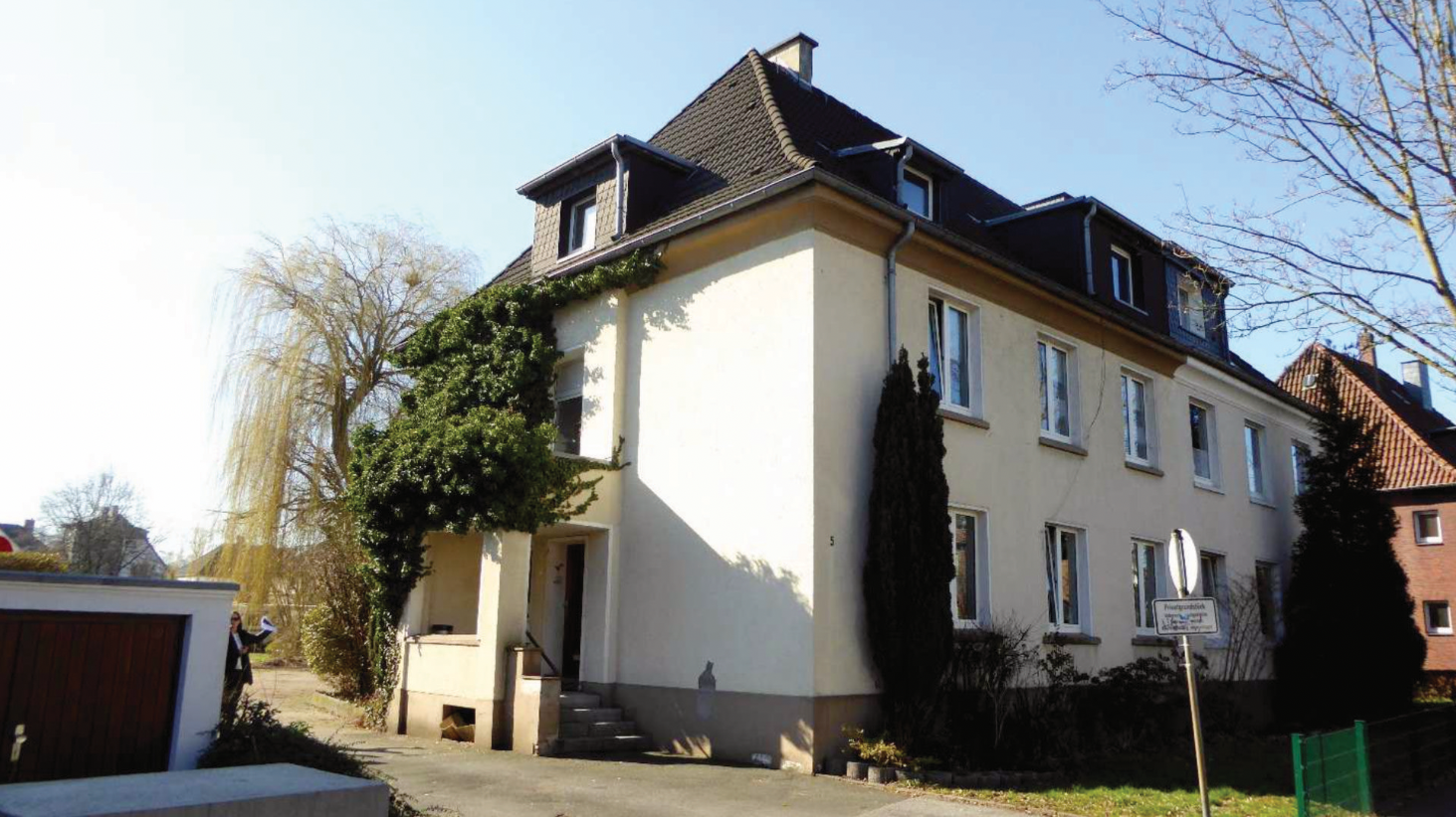 - Wohnungen: Drei Wohneinheiten, erreichbar über einen Gemeinschaftseingang.