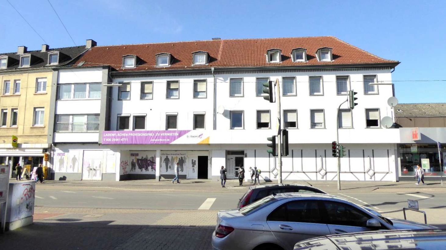 Das Wohn- und Geschäftshaus befindet sich an der Kreuzung von Ickener Straße 39-43 und Friedhofstraße 1-5, direkt im Herzen von Castrop-Rauxel. Diese zentrale Lage ermöglicht sowohl eine hohe Sichtbarkeit für gewerbliche Nutzungen als auch eine gute Anbindung an den lokalen und überregionalen Verkehr. Die Umgebung ist von einer Mischung aus Wohngebieten, Einzelhandelsgeschäften, gastronomischen Einrichtungen und Dienstleistungsunternehmen geprägt. Dadurch ergibt sich eine starke Fußgängerfrequenz, die den Standort für Einzelhandelsunternehmen und Dienstleistungen besonders attraktiv macht.